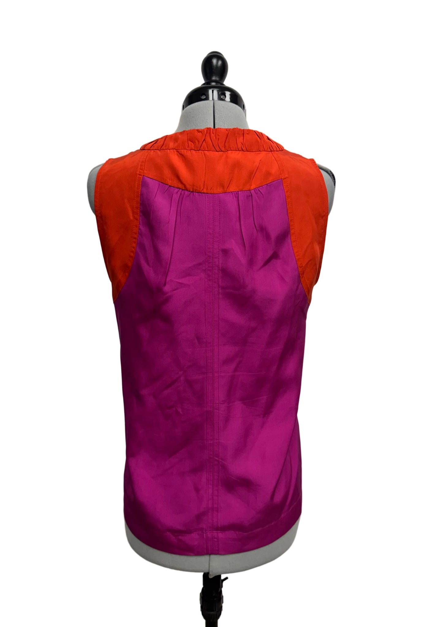 Details: Purple and orange sleeveless blouse