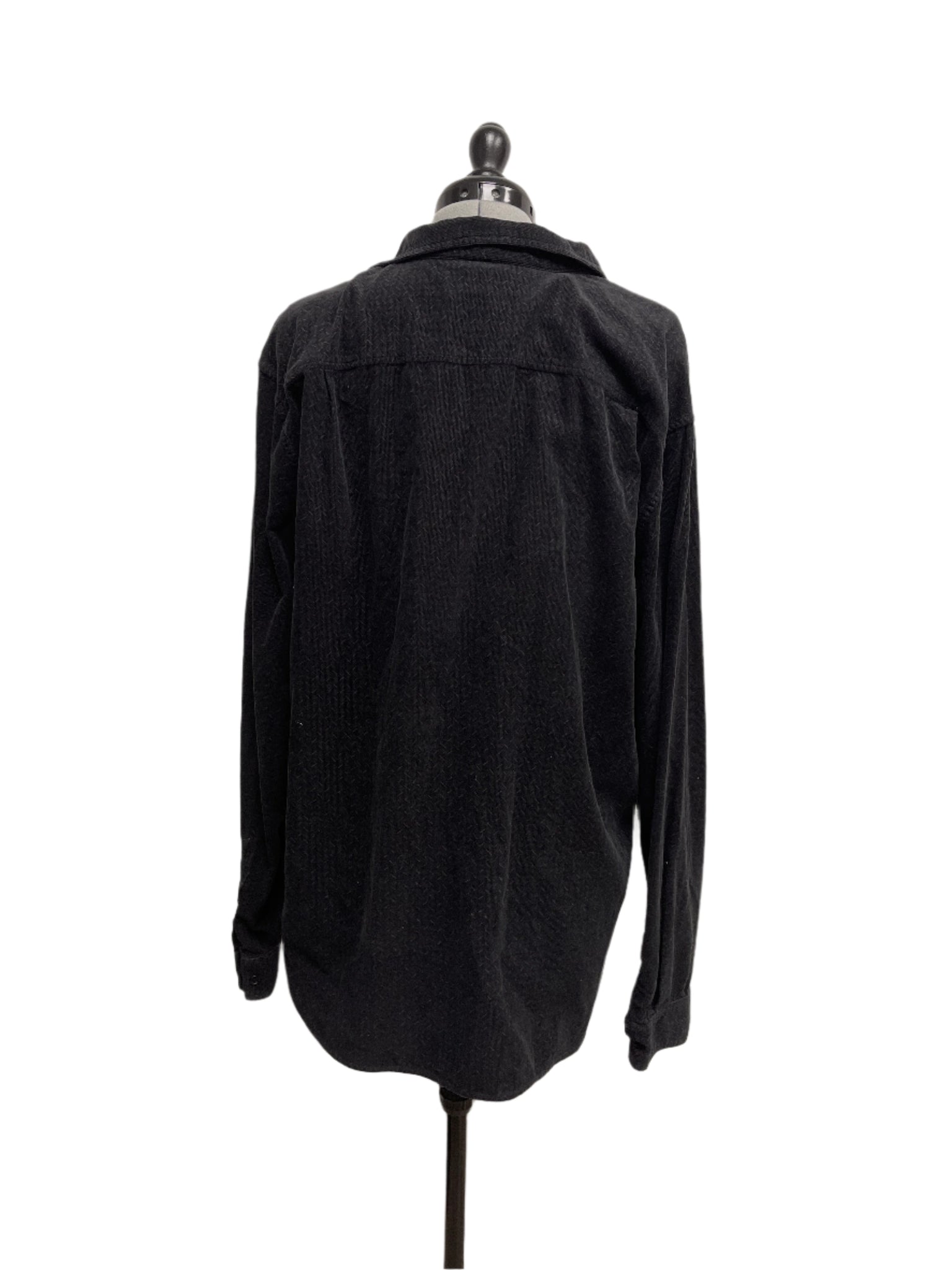 Details: Black long sleeve button up collared top with 1 breast pocket