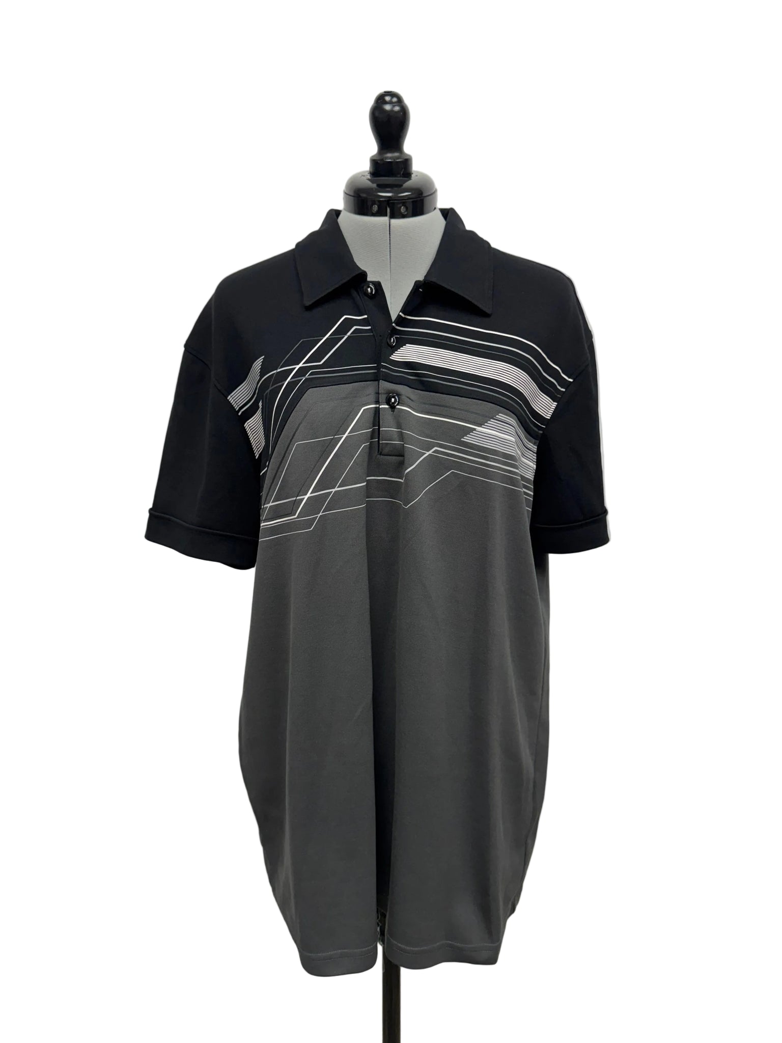 Details: Black and grey short sleeve golf shirt