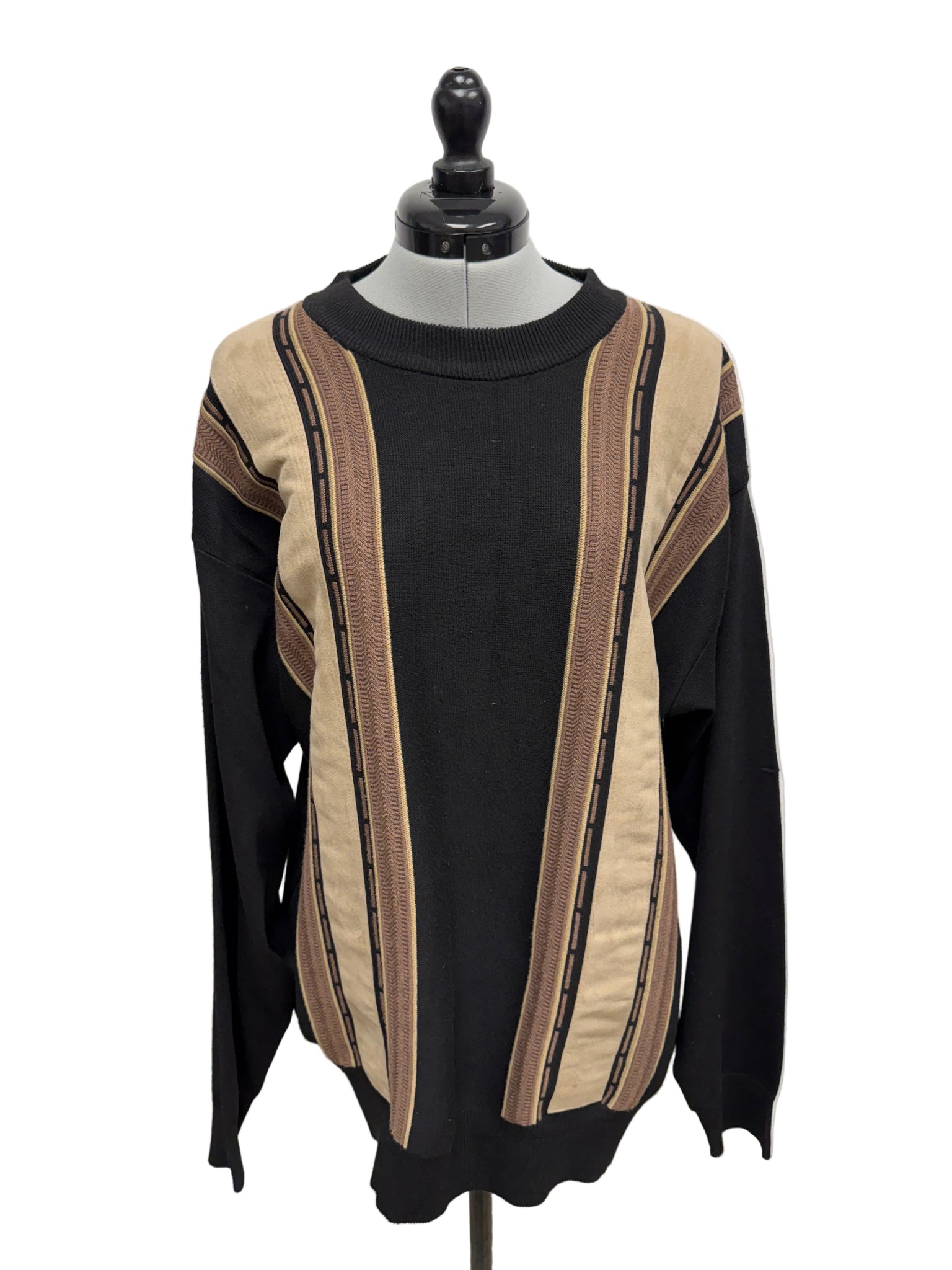 Details: Black and beige sweater with suede detail