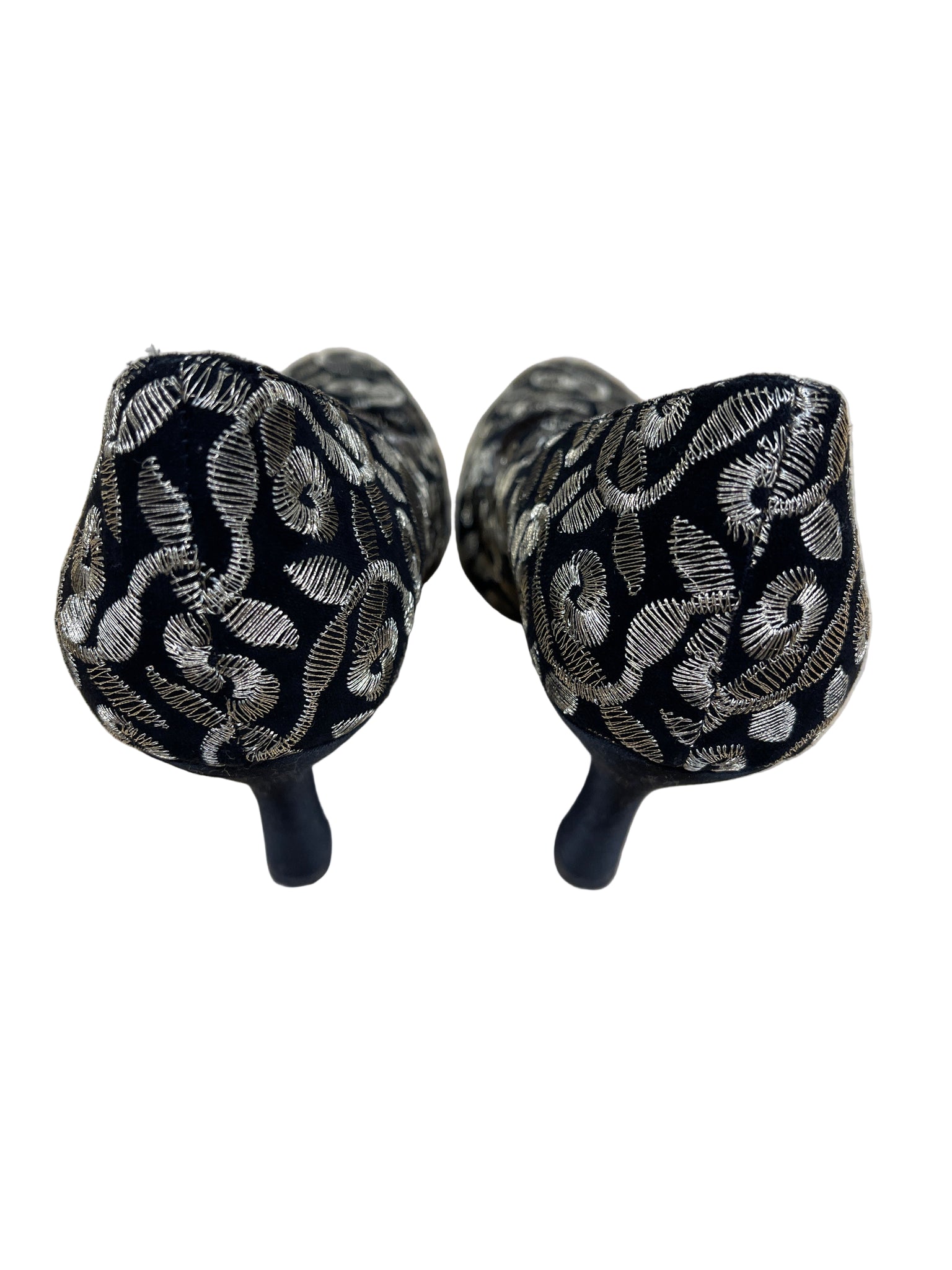 Details: Black and gold coloured high heel dress shoes with dust bag
