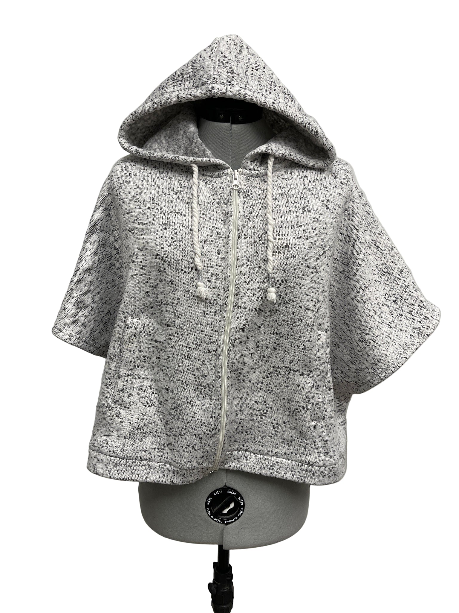 Details: Grey sleeveless sweater with hood and pockets