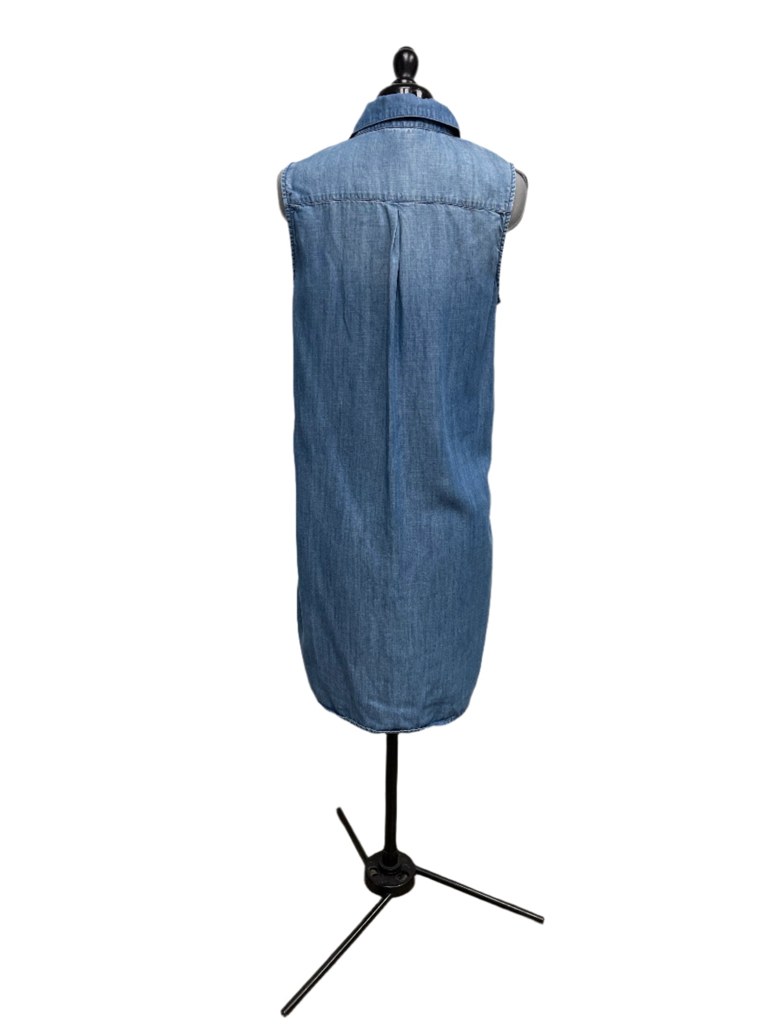 Details: Blue denim below the knee dress with 1 breast pocket
