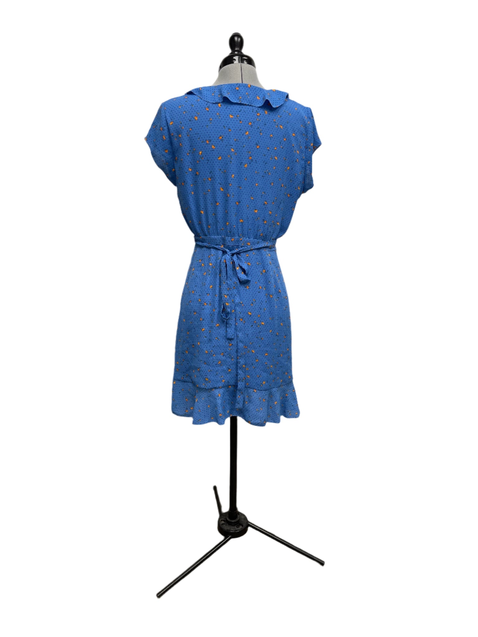 Details: Blue patterned knee length dress