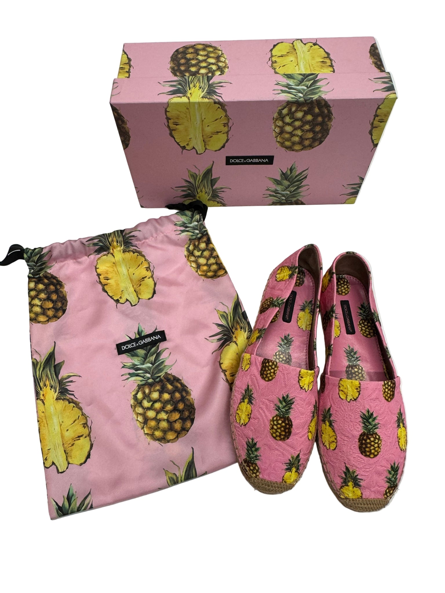 Details: Pink and yellow pineapple print loafers (Not Authenticated