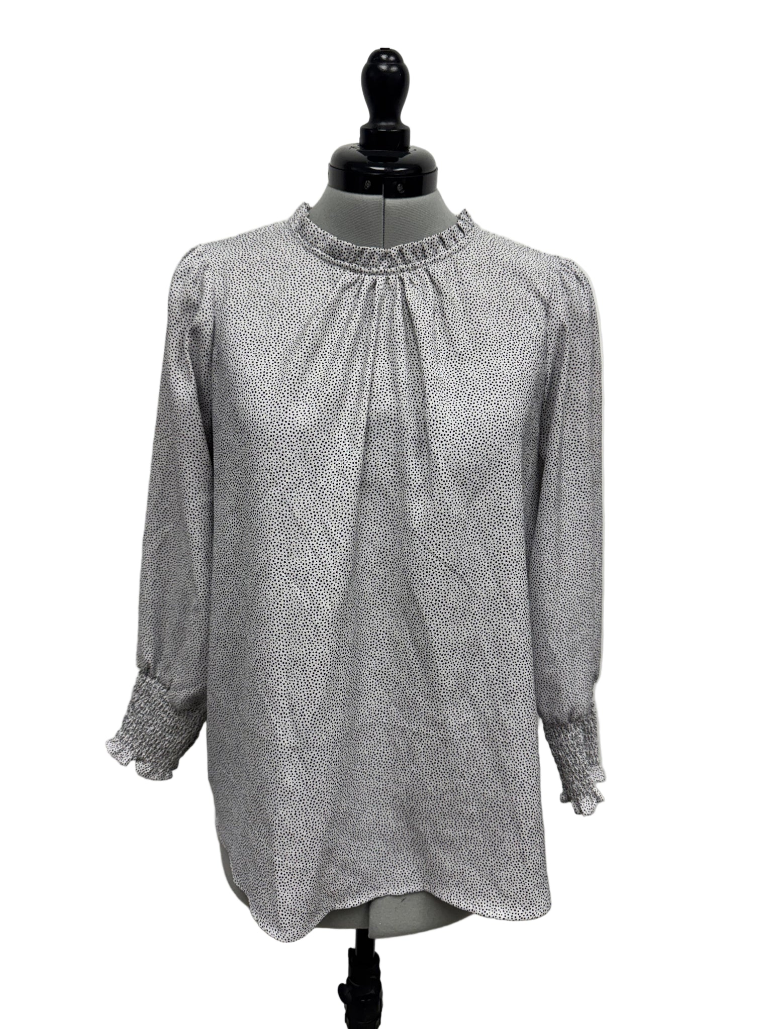 Details: Black and white polka dots long sleeve blouse