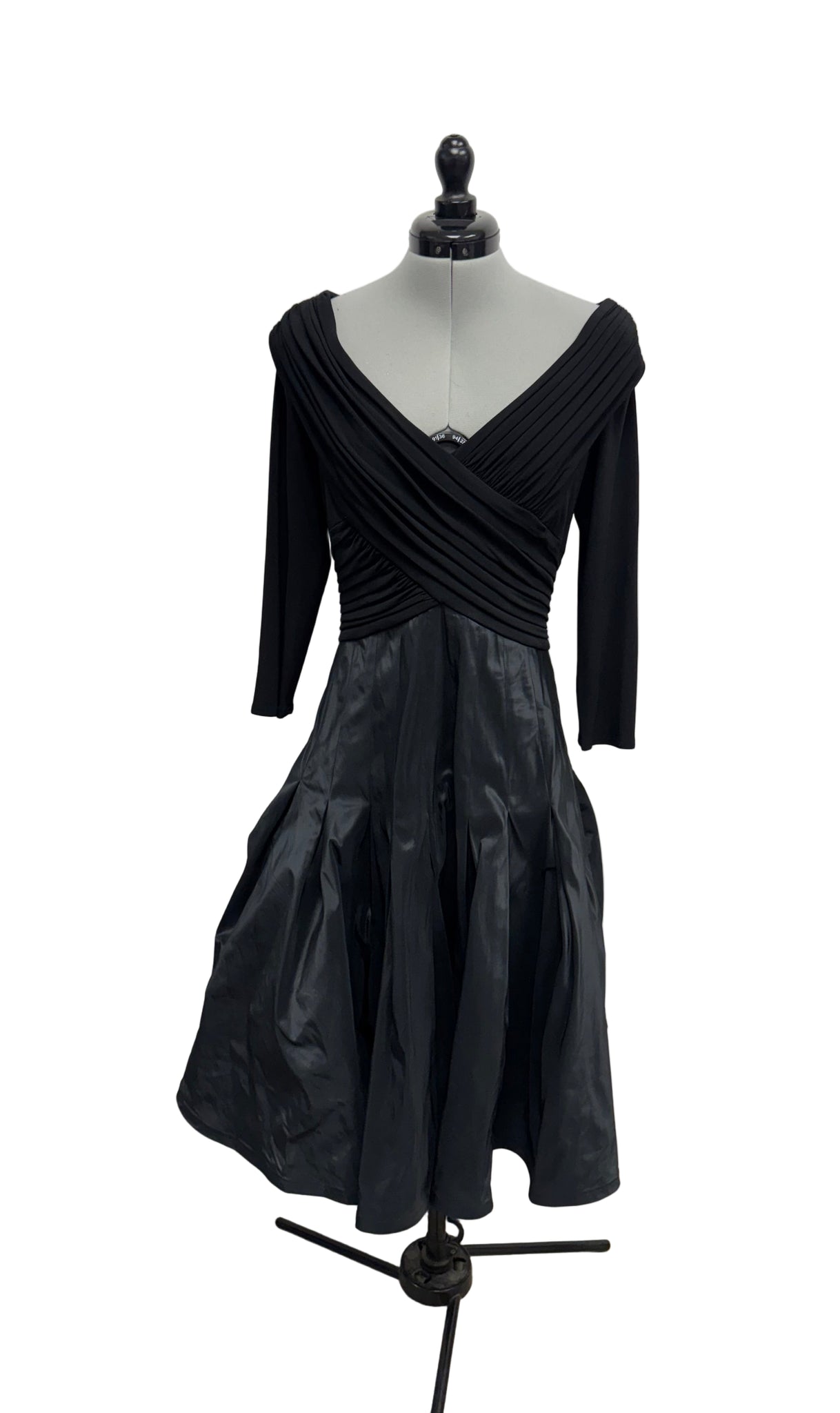 Details: Black color below the knee long sleeve flare dress